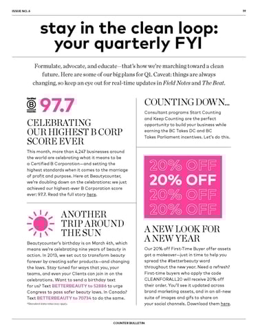 The Counter Bulletin is a fun and engaging digital mini-magazine written for Beautycounter's community of 60,000+ Brand Ambassadors.