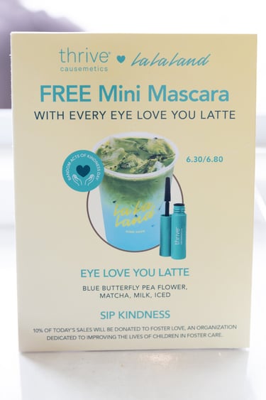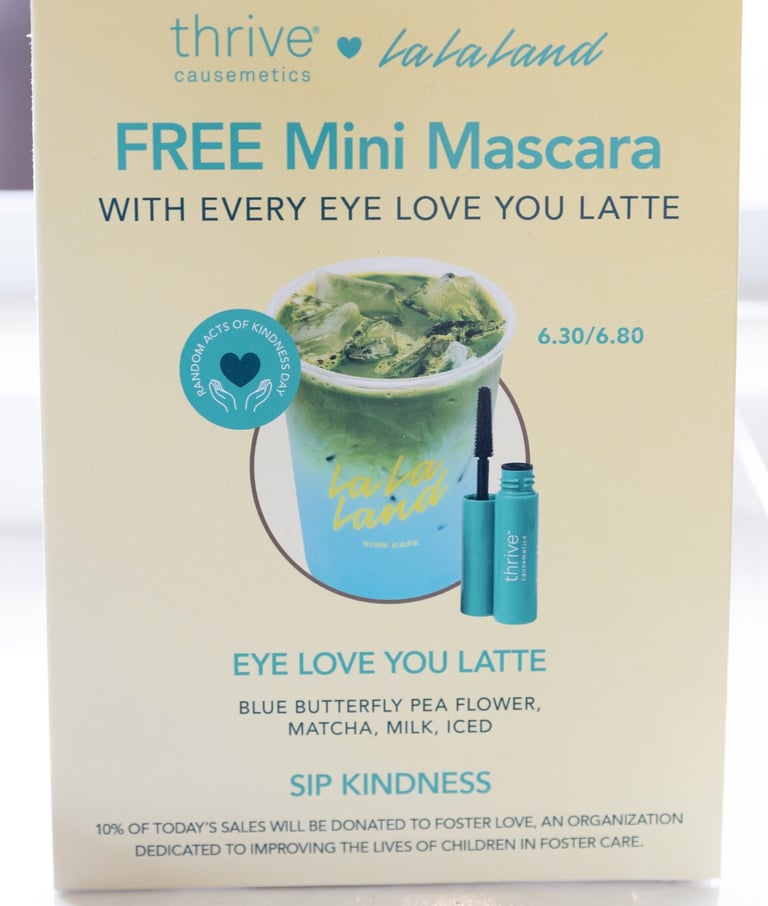 United by a common goal of supporting their local communities, this partnership unveiled limited edition variations of a Thrive Causemetics favorite: Liquid Lashâ„¢ Extensions Mascara. La La Land's 'Eye Love You' Latte was also a hit.